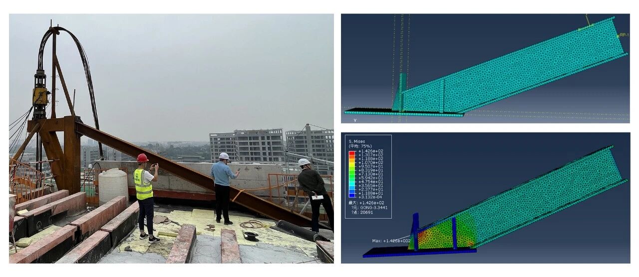 通過有限元仿真對提升全過程進行模擬分析,確保結構在動態施工中的安全性與最終安裝精度。