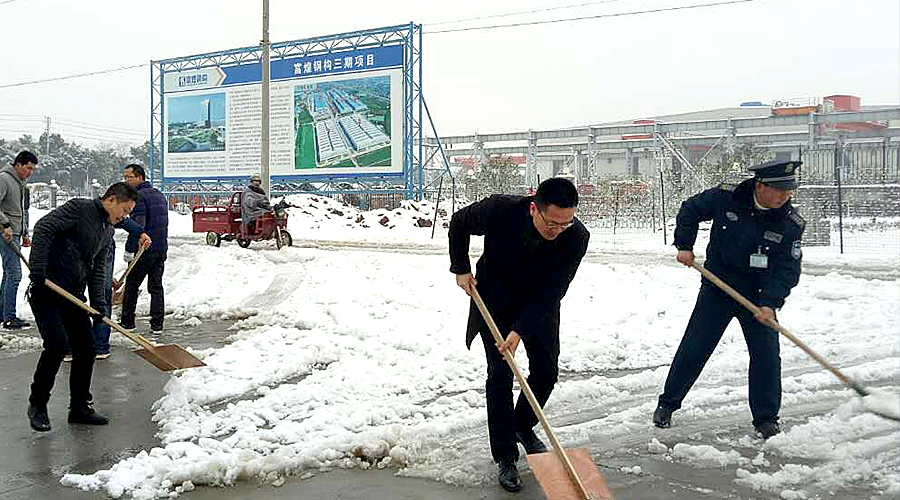 經過一個多小時的奮戰,大家終于將公司的主要入口、主干道以及生產區域等地的積雪全部鏟除,為員工和來訪客人開辟了一條洋溢著溫情的通暢之路。雖然大家的鞋子都弄濕了,也出了一身的汗,可看著眼前的成果,成就感洋溢在每個人的臉龐。一場大雪,從側面折射出富煌良好的精神面貌和團隊凝聚力。富煌集團及時組織員工參加掃雪活動,不僅保證了各位員工和來訪客人的安全出行和道路交通的暢通,更重要的是通過此次活動,充分體現出公司員工良好的集體責任感和團隊協作精神。俗話說,瑞雪兆豐年,2018年富煌集團業績必定蒸蒸日上、再創新高!