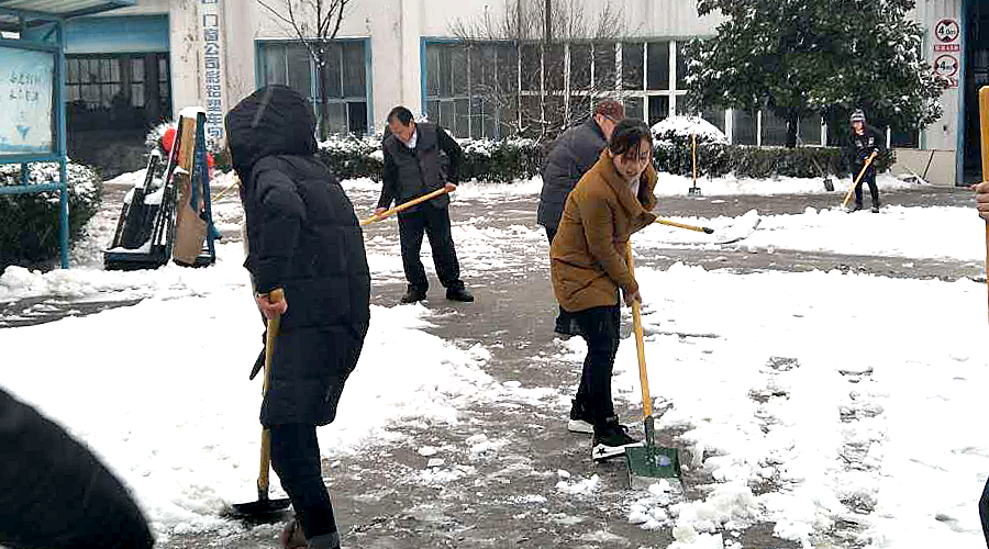 早上8點,員工們不畏嚴寒、冒著大雪準時來到公司。在領導的帶領下,員工們開始揮舞著鐵鍬對集團附近以及路上的積雪和結冰進行清掃,大家你追我趕,齊心協力,配合默契,鏟的鏟、推的推、掃的掃,干的熱火朝天,不亦樂乎。忙碌的身影構成了一道亮麗的風景線。雖然室外溫度很低,但大家勞動的熱情和團結的力量讓這個冬日變得格外溫暖。