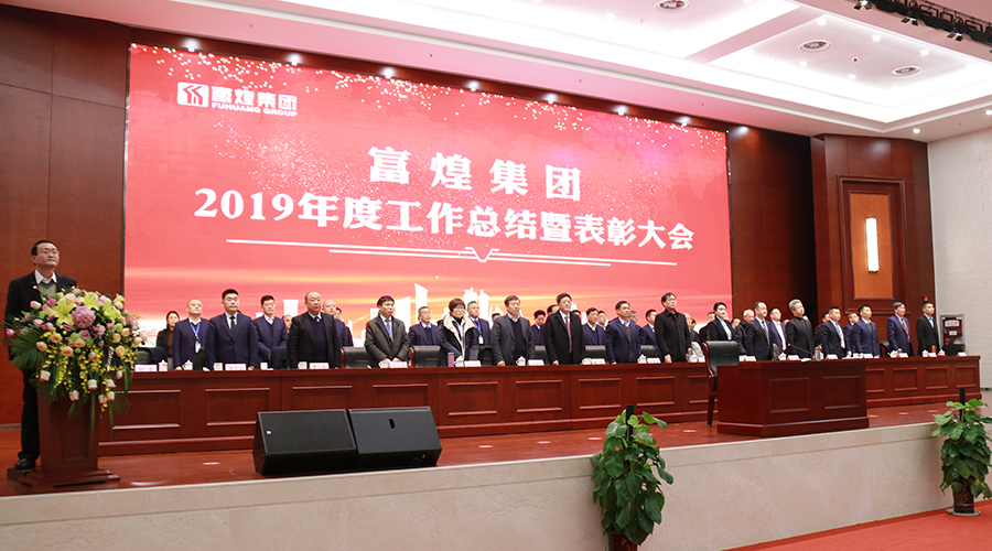 2020年1月19日,富煌集團2019年度工作總結暨表彰大會在富煌會議中心隆重召開。會議特邀黃麓鎮人大主席夏時洲,富煌集團王為忠、黃世庚、黃詩榮等二十多位退休老員工代表及四十多位員工家屬代表參會。本次大會盛況空前,現場匯聚了集團、各分子公司負責人及員工1200多人。另外,未能現場參加會議的各分子公司以網絡視頻方式參加了會議。大會由富煌集團黨委書記、工會主席劉宏主持。